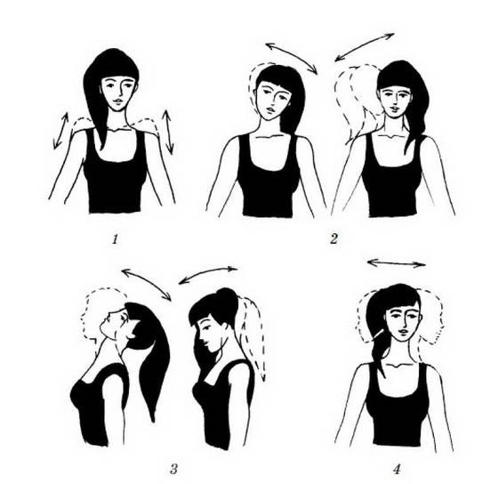 Наклоны головы — классические наклоны и повороты головы налево и направо и вращение головы по кругу в одну и другую сторону.