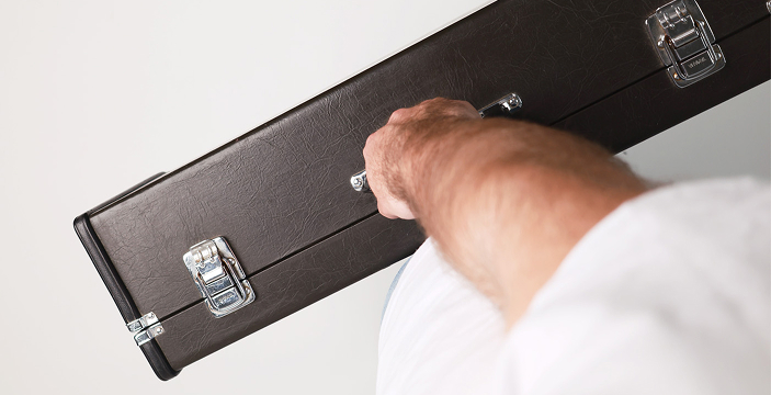 Футляр с замками держите узкой частью к себе