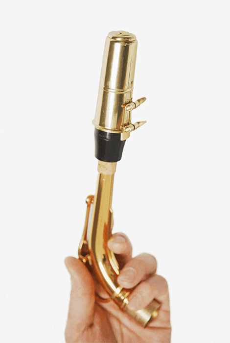 Берите инструмент за раструб и не давите на стойки и клавиши. Если взять его за эску (верхнюю часть), тело саксофона может вывалиться.