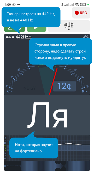 На примере приложения «Тюнер и метроном» от Soundcorset (есть во всех библиотеках приложений у Андроид) покажу, ситуаций и что делать:
